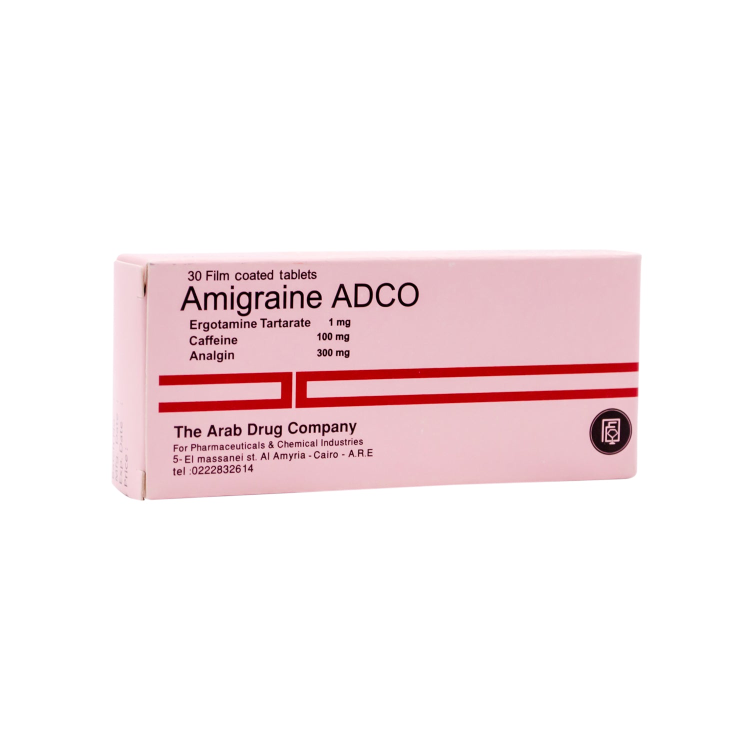 • أميجرين أدكو 1 ملغ إرغوتامين طرطرات، 100 ملغ كافيين و 300 ملغ أنالجين