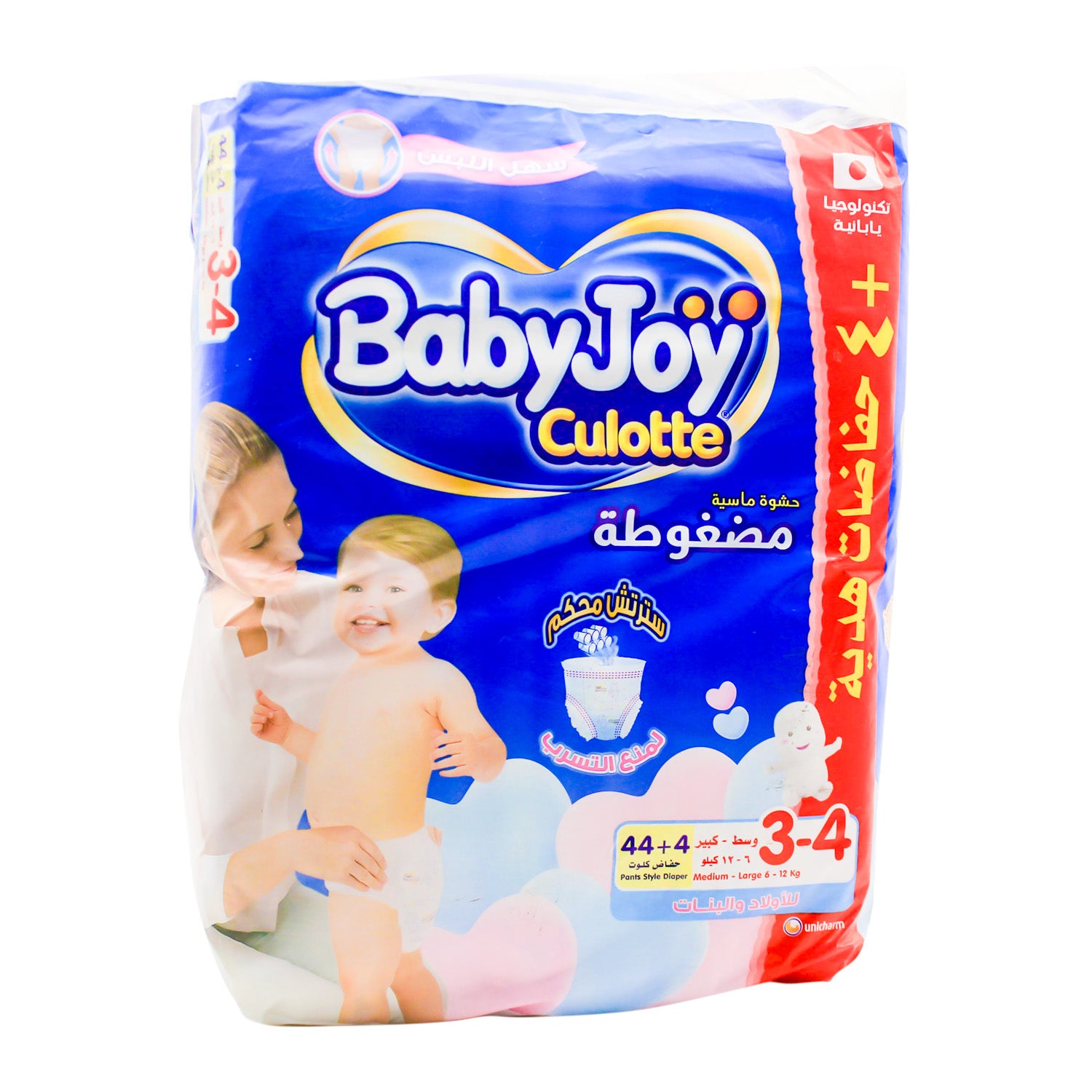حفاضات الأطفال كلوت من بيبي جوي مقاس 3-4 مصممة لامتصاص مريح وفعال للأطفال الذين يتراوح وزنهم بين 6-12 كجم، وتوفر حماية من التسرب وسهولة في الاستخدام.