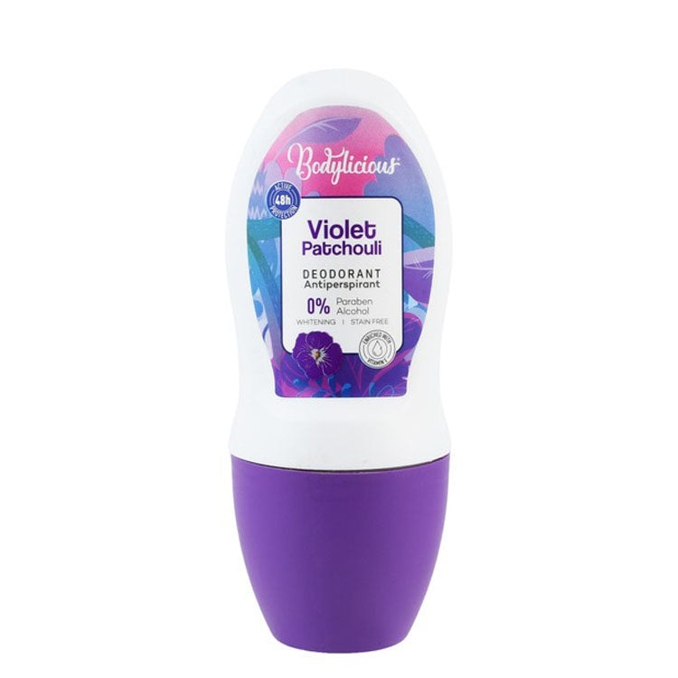 مزيل عرق بوديليشوس رول أون مضاد للتعرق يدوم 48 ساعة، برائحة الباتشولي البنفسجي مع فيتامين هـ للنساء - خالٍ من البارابين والكحول