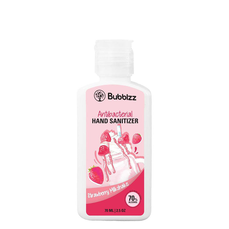 معقم يدين معطر من بابلز، مركب من 70% كحول لتوفير حماية فعالة ضد الجراثيم والبكتيريا برائحة ميلك شيك الفراولة اللطيفة.