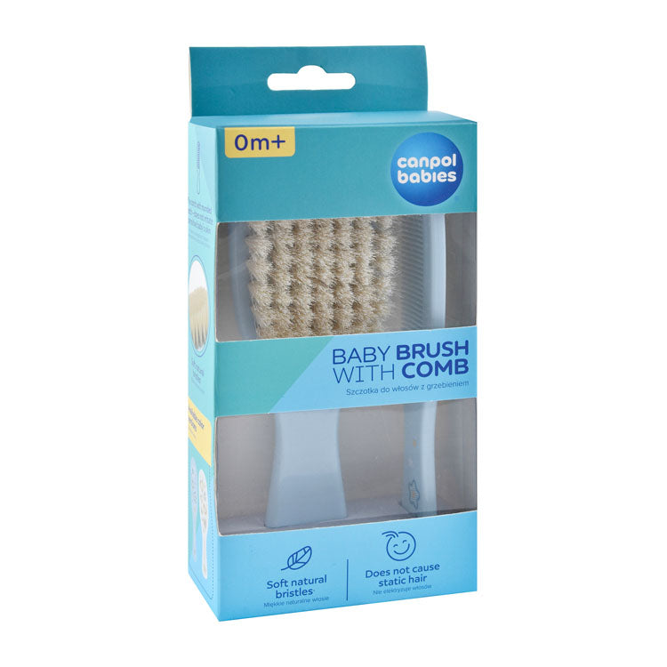تم تصميم طقم فرشاة ومشط كانبول بيبيز لتمشيط شعر ورأس الأطفال الرضع بلطف وأمان، وهو خالٍ من مادة BPA.