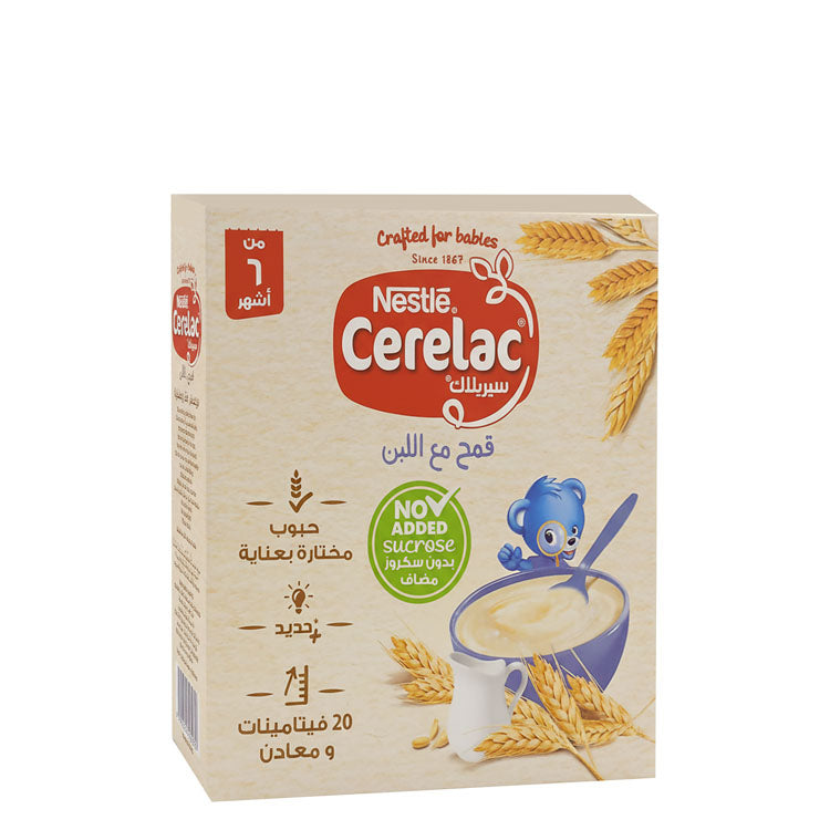 سيريلاك حبوب الأطفال باللبن والقمح هو طعام من الحبوب مدعم بالعناصر الغذائية ومصمم للأطفال بعمر 6 أشهر فما فوق، تم تحضيره بدون إضافة السكروز لدعم الفطام الصحي.