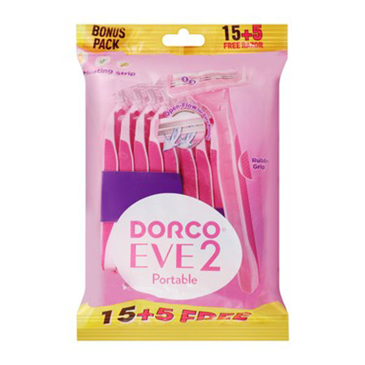 شفرات حلاقة دوركو إيف 2 الوردية المحمولة مع فيتامين هـ، والصبار، وزيت الأرغان (15+5 خالي من المواد الضارة)