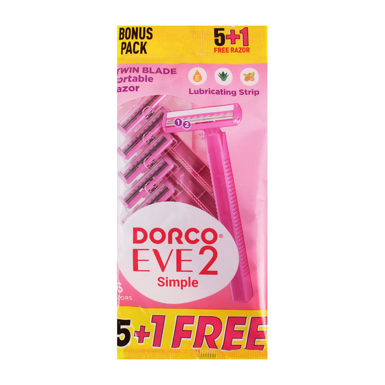 توفر شفرات الحلاقة Dorco Eve Simple Pink التي تستخدم لمرة واحدة ذات الشفرتين تجربة حلاقة مريحة وناعمة، وغنية بفيتامين E وزيت الأرغان وخلاصة الصبار لترطيب البشرة وراحتها.