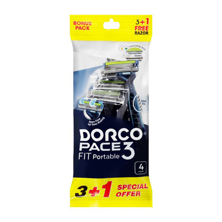 تم تصميم شفرات الحلاقة المحمولة دوركو بيس 3 فيت لتوفير تجربة حلاقة ناعمة ومريحة، وتتميز بتصميم محمول وشرائط ترطيب غنية بفيتامين E والصبار.