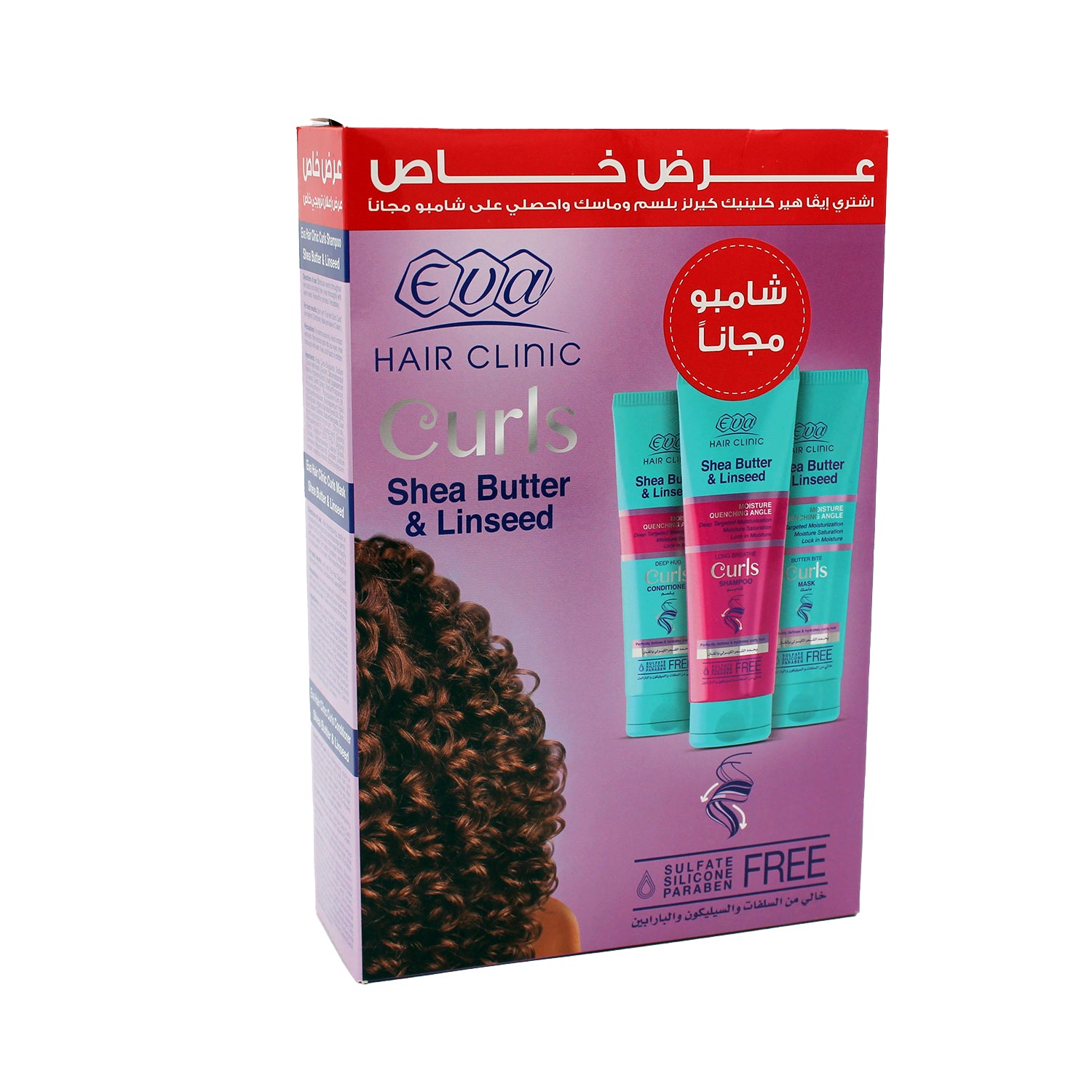 مجموعة إيفا للعناية بالشعر الكيرلي مع زبدة الشيا وبذور الكتان - خالية من الكبريتات والبارابين والسيليكون