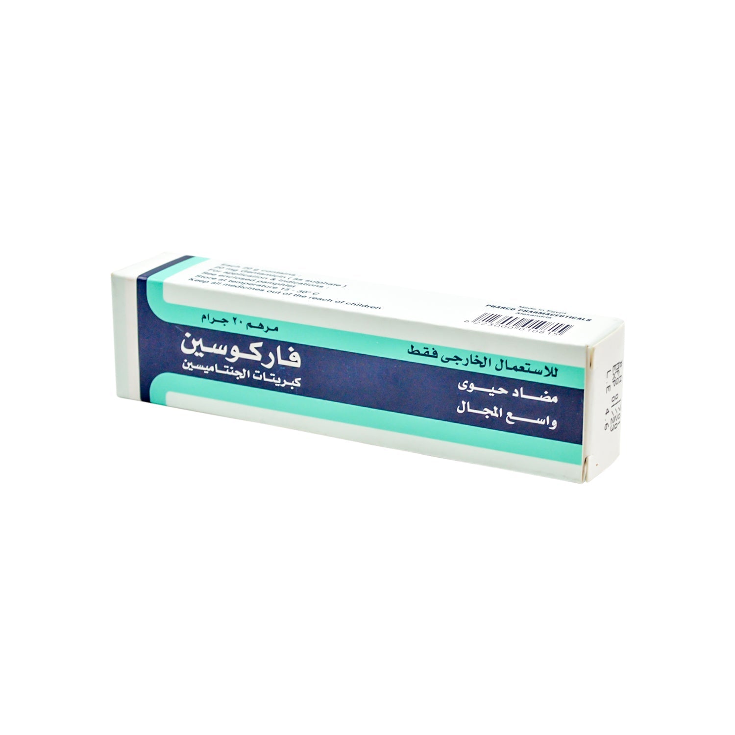 مرهم فاركوسين 1 ملجم/جم جنتاميسين مضاد حيوي واسع المدى هو دواء موضعي مصمم لعلاج مجموعة واسعة من الالتهابات الجلدية البكتيرية.