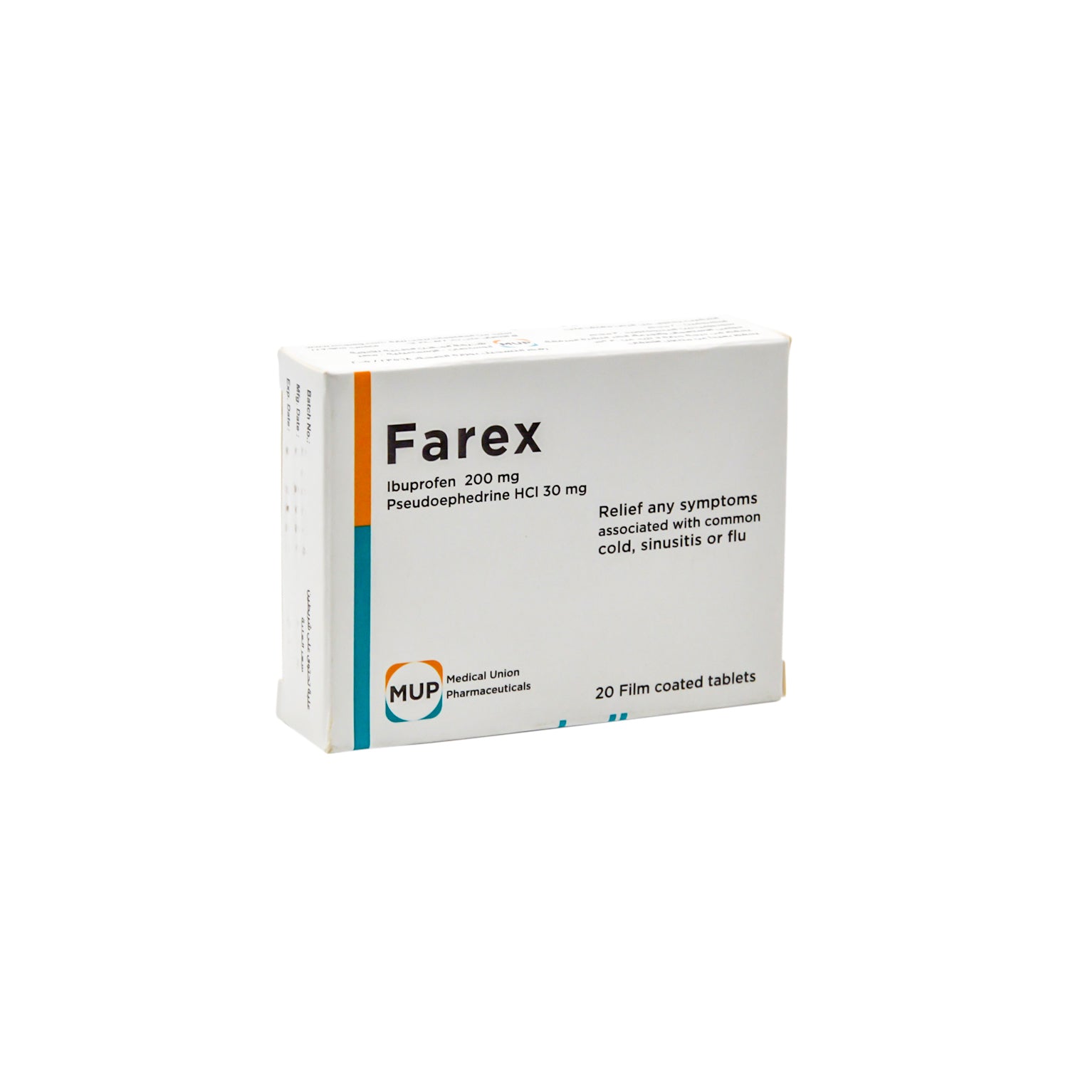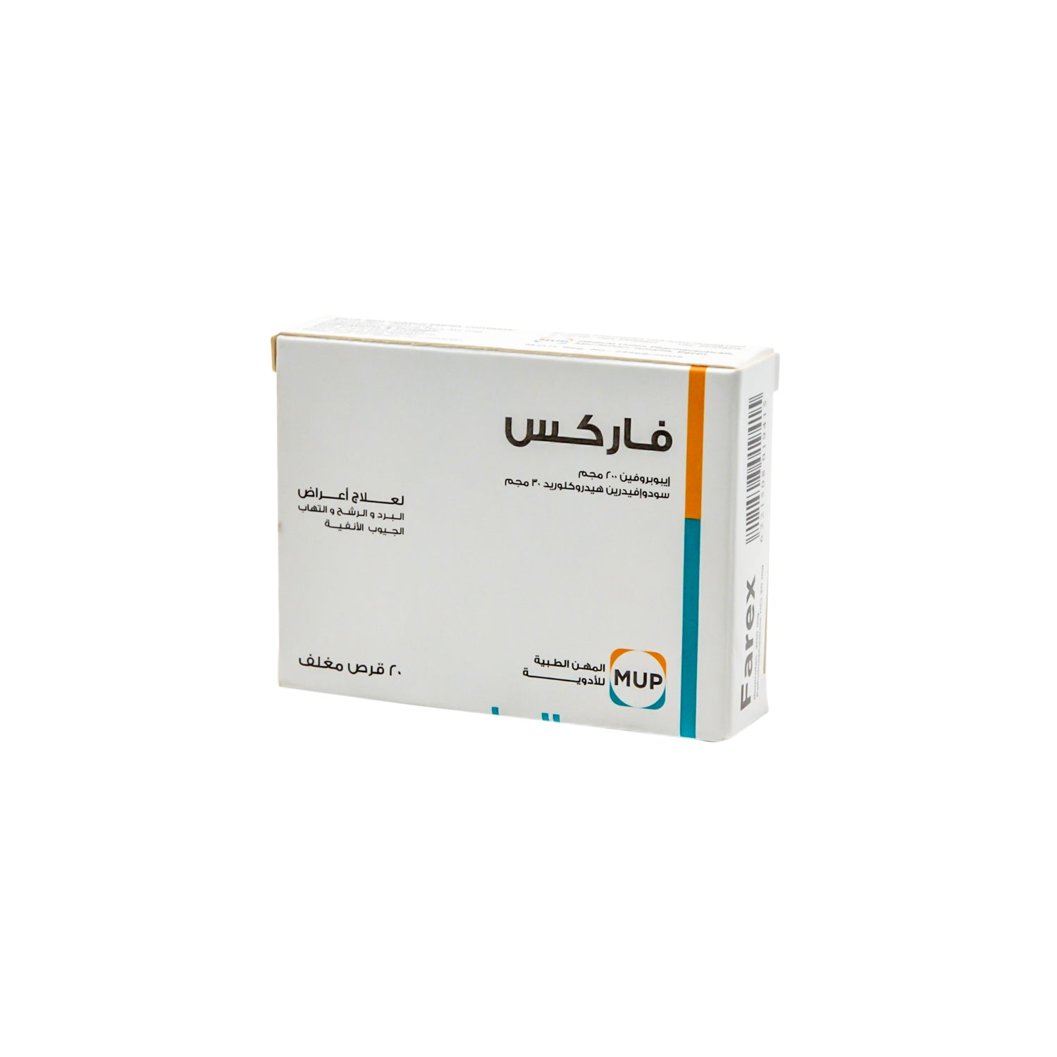 • فاركس ٢٠٠ ملغ إيبوبروفين و٣٠ ملغ سودوإيفيدرين هيدروكلوريد لعلاج نزلات البرد والتهاب الجيوب الأنفية والإنفلونزا