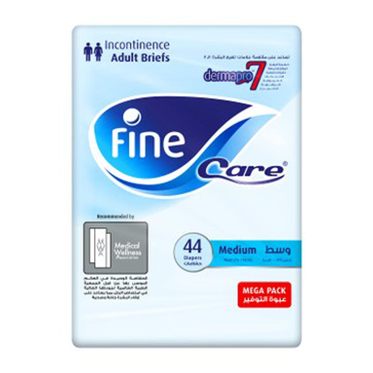 حفاضات كبار السن فاين كير متوسطة سلس البول مصممة لتوفير امتصاص سري وموثوق للبالغين الذين يعانون من سلس البول المعتدل إلى الشديد، مما يضمن الراحة والحماية من التسرب.