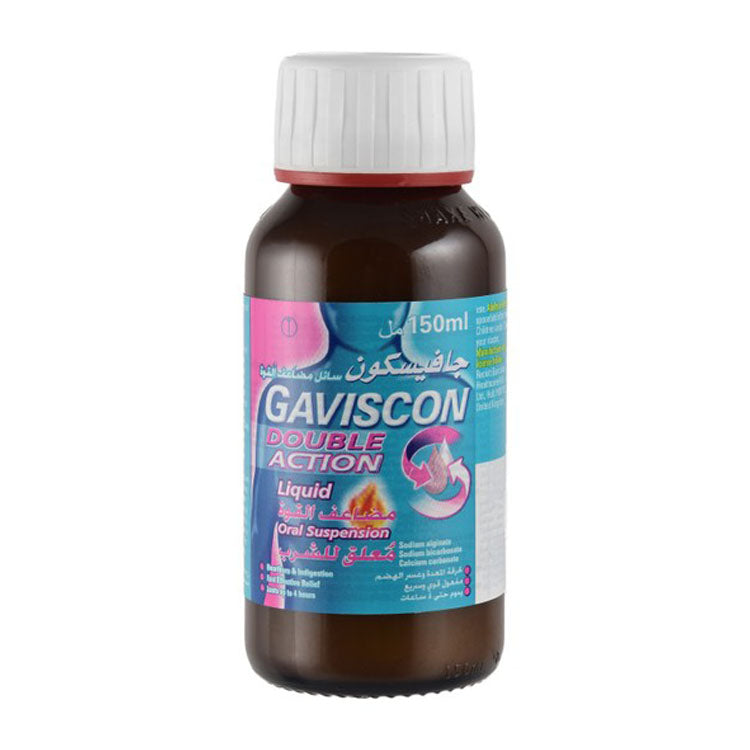 جافيسكون ثنائي المفعول، ٥٠٠ ملجم/١٠ مل من ألجينات الصوديوم، ٢١٣ ملجم/١٠ مل من بيكربونات الصوديوم، و٣٢٥ ملجم/١٠ مل من كربونات الكالسيوم، معلق فموي بنكهة النعناع لتخفيف حرقة المعدة وعسر الهضم (١٢ سنة فأكثر) - خالٍ من السكر والغلوتين