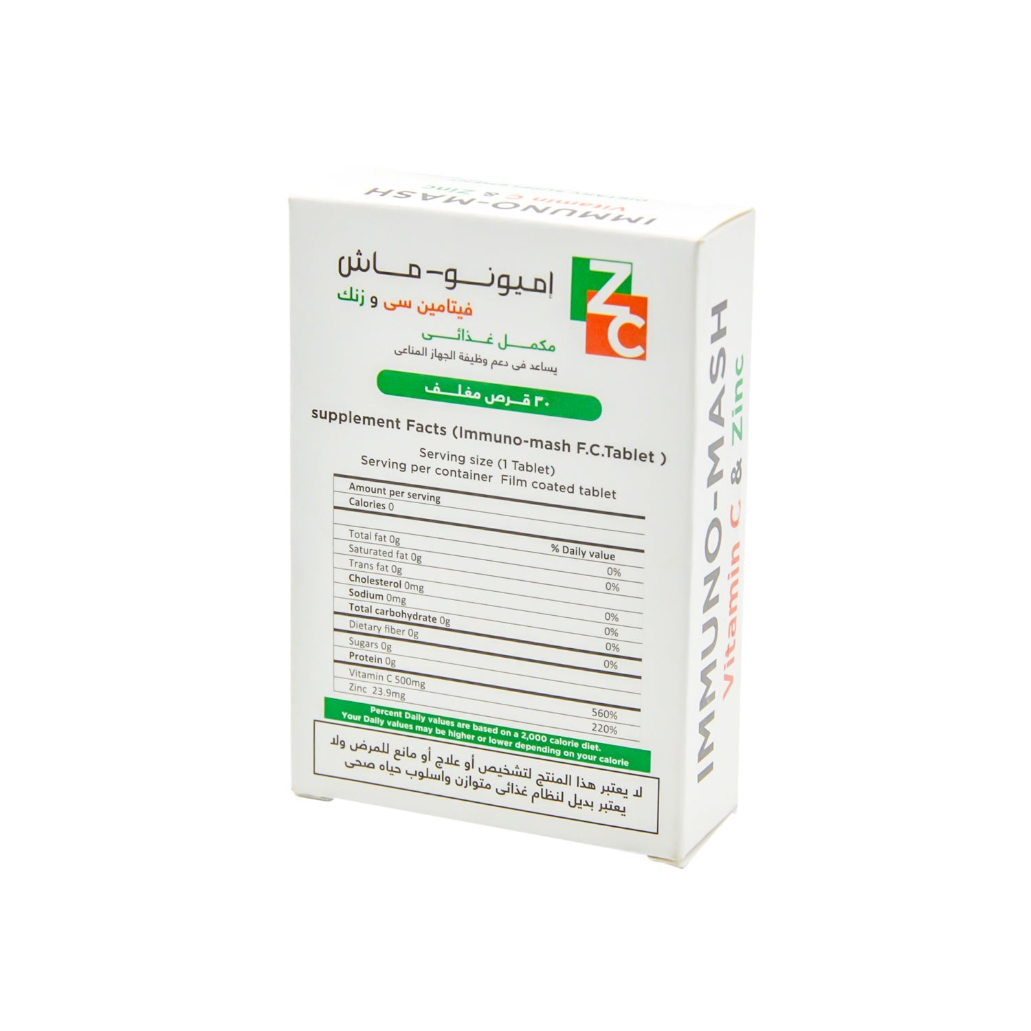 Immuno-Mash 500mg فيتامين سي مع الزنك هو مكمل غذائي مصمم لتعزيز وظيفة المناعة وتعزيز الصحة العامة.