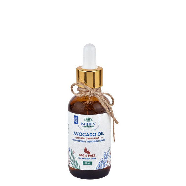 زيت الأفوكادو المعصور على البارد من إنفينيتي ناتشورالز هو زيت نقي وطبيعي، خالٍ من الزيوت المعدنية والبارابين والمواد الكيميائية، ومناسب لتغذية البشرة والشعر.