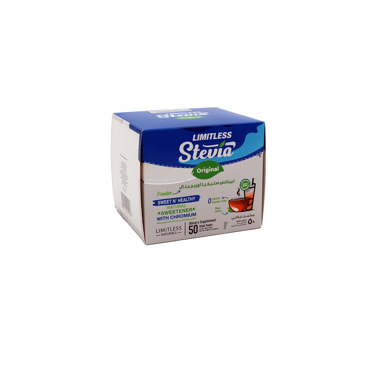 توفر أكياس مسحوق ستيفيا الأصلي من Limitless Naturals بديلًا طبيعيًا وخاليًا من السعرات الحرارية ومن الكائنات المعدلة وراثيًا للمحليات، معزز بالكروم لدعم عملية التمثيل الغذائي المحتمل.