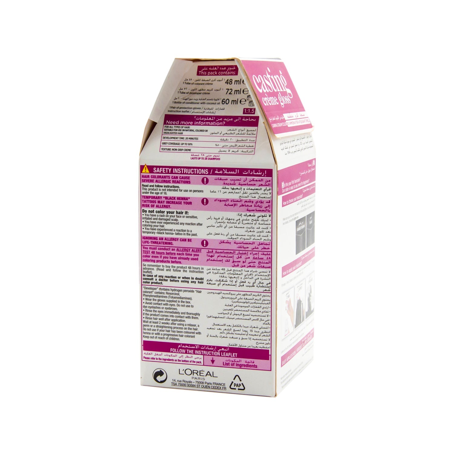 صبغة الشعر الخالية من الأمونيا هذه توفر لمعانًا وتتضمن بلسم العسل، وقد صُممت لتعطي درجة بني داكن جدًا لصبغ الشعر.