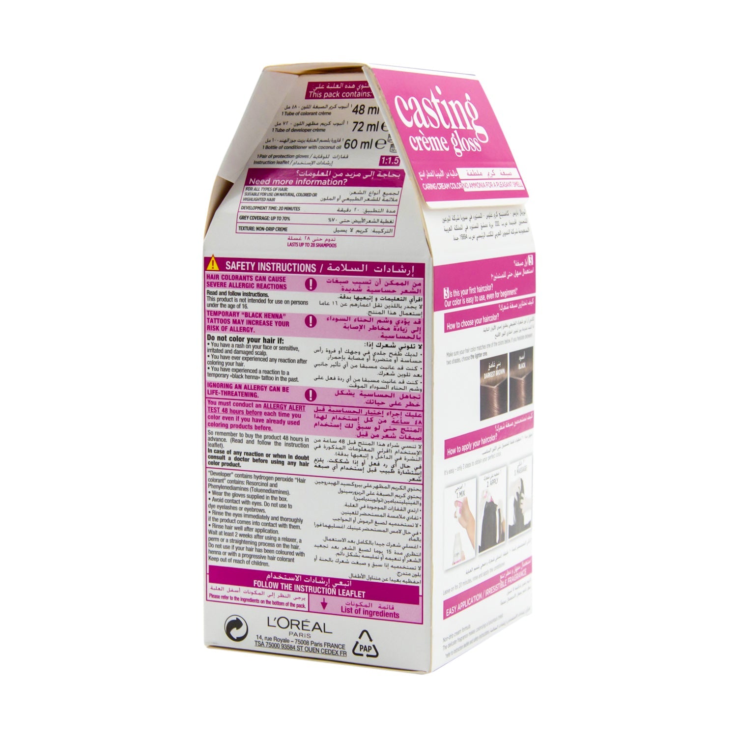صبغة شعر شبه دائمة خالية من الأمونيا من مجموعة كاستينج كريم جلوس من لوريال، مصممة لتوفير لون بني فاتح لطيف مع الفائدة الإضافية لبلسم العسل المغذي.