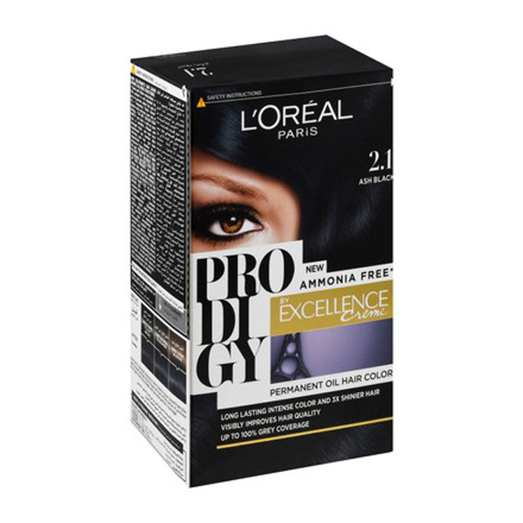 لوريال إكسلنس بروديجي صبغة شعر دائمة بالزيت باللون الأسود الرمادي 2.1 هي حل لصبغ الشعر خالٍ من الأمونيا ومصمم للون يدوم طويلاً.