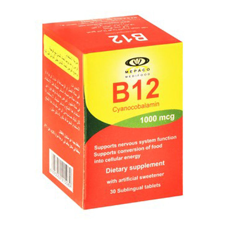 مكمل غذائي من ميباكو يحتوي على 1000 ميكروغرام من فيتامين ب12 سيانوكوبالامين لدعم وظائف الجهاز العصبي وطاقة الخلايا