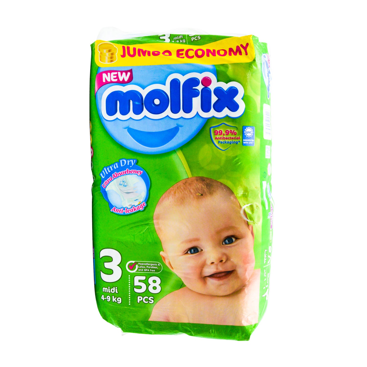 حفاضات مولفيكس للأطفال الرضع متوسطة الحجم (4-9 كجم) مضادة للحساسية - خالية من مادة BPA، وخالية من اللاتكس، وخالية من البارابين