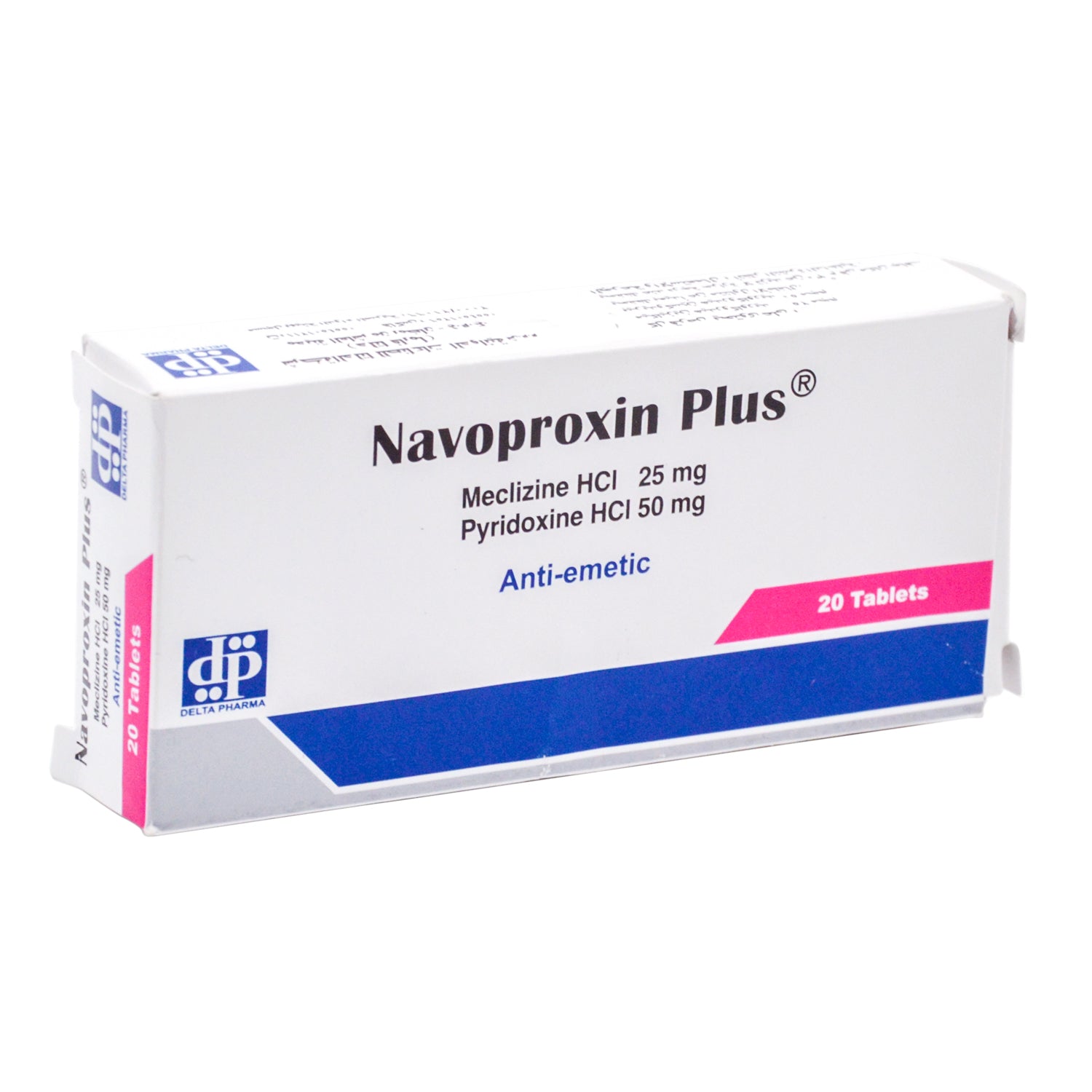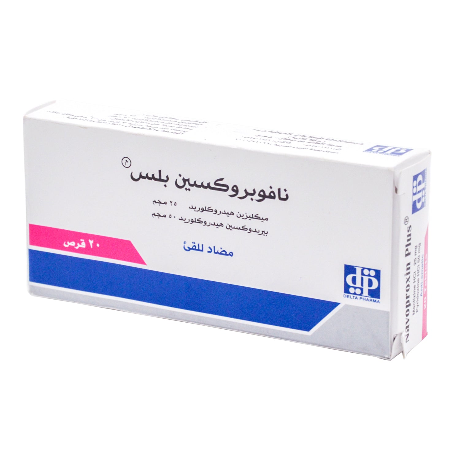 نافوبروكسين بلس هو دواء مضاد للقيء يحتوي على الميكليزين هيدروكلوريد والبيريدوكسين هيدروكلوريد، ومصمم لتخفيف الغثيان والقيء والدوخة.