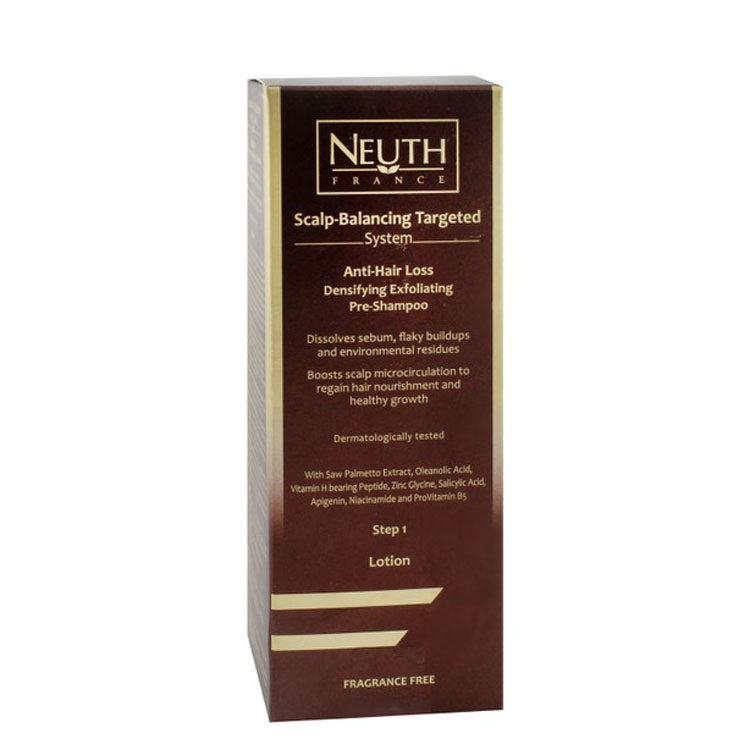 تم تركيب لوشن ما قبل الشامبو الخالي من العطر من نيوث لموازنة فروة الرأس، والحد من تساقط الشعر، وتقشير فروة الرأس، وتعزيز كثافة الشعر.