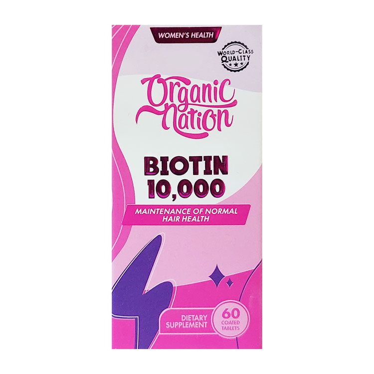 توفر تركيبة Organic Nation الغذائية 10000 ميكروغرام من البيوتين، وهي مصممة خصيصًا لدعم وتعزيز نمو الشعر.