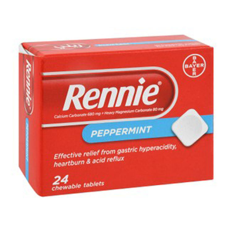 • أقراص ريني القابلة للمضغ بنكهة النعناع، ​​680 ملغ من كربونات الكالسيوم، لعلاج الحموضة الزائدة، وارتجاع المريء، وحرقة المعدة