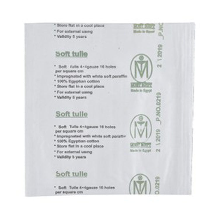 الشاش الناعم من التول مع البارافين الأبيض الناعم هو ضمادة غير لاصقة مصممة لحماية الجروح وتعزيز الشفاء ومنع الالتصاق بسطح الجرح، ومناسبة لمجموعة متنوعة من الإصابات السطحية.