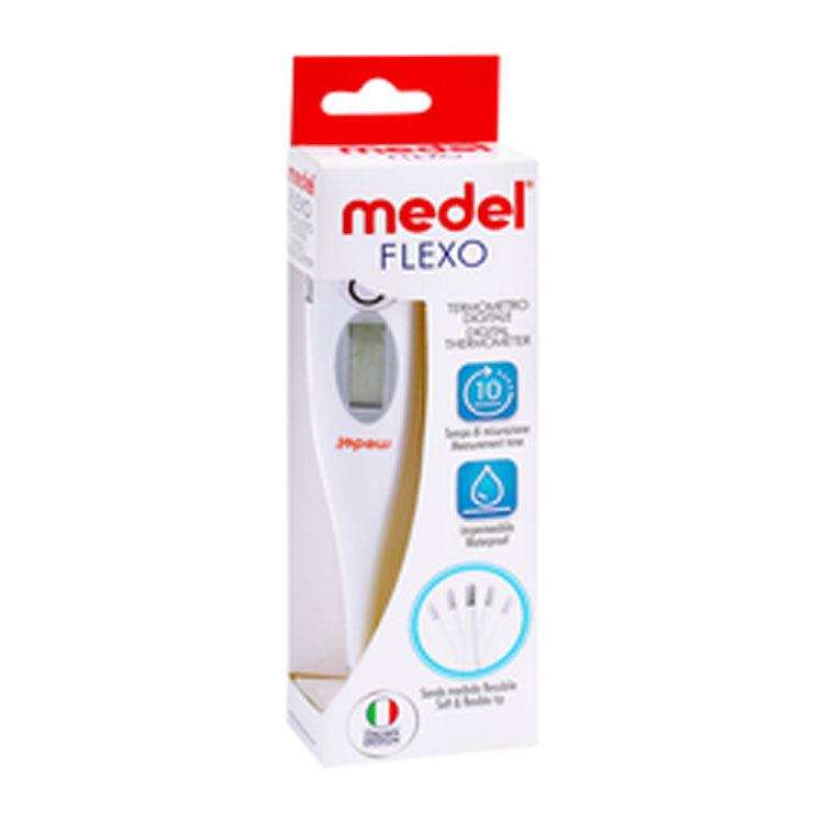 ميزان حرارة ميديلا فليكسو الرقمي المقاوم للماء باللون الأبيض هو جهاز طبي موثوق مصمم لقياس دقيق وصحي لدرجة حرارة الجسم.