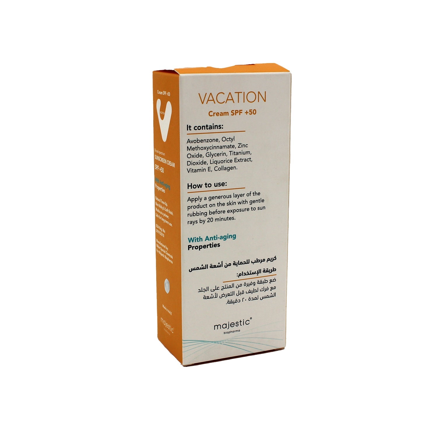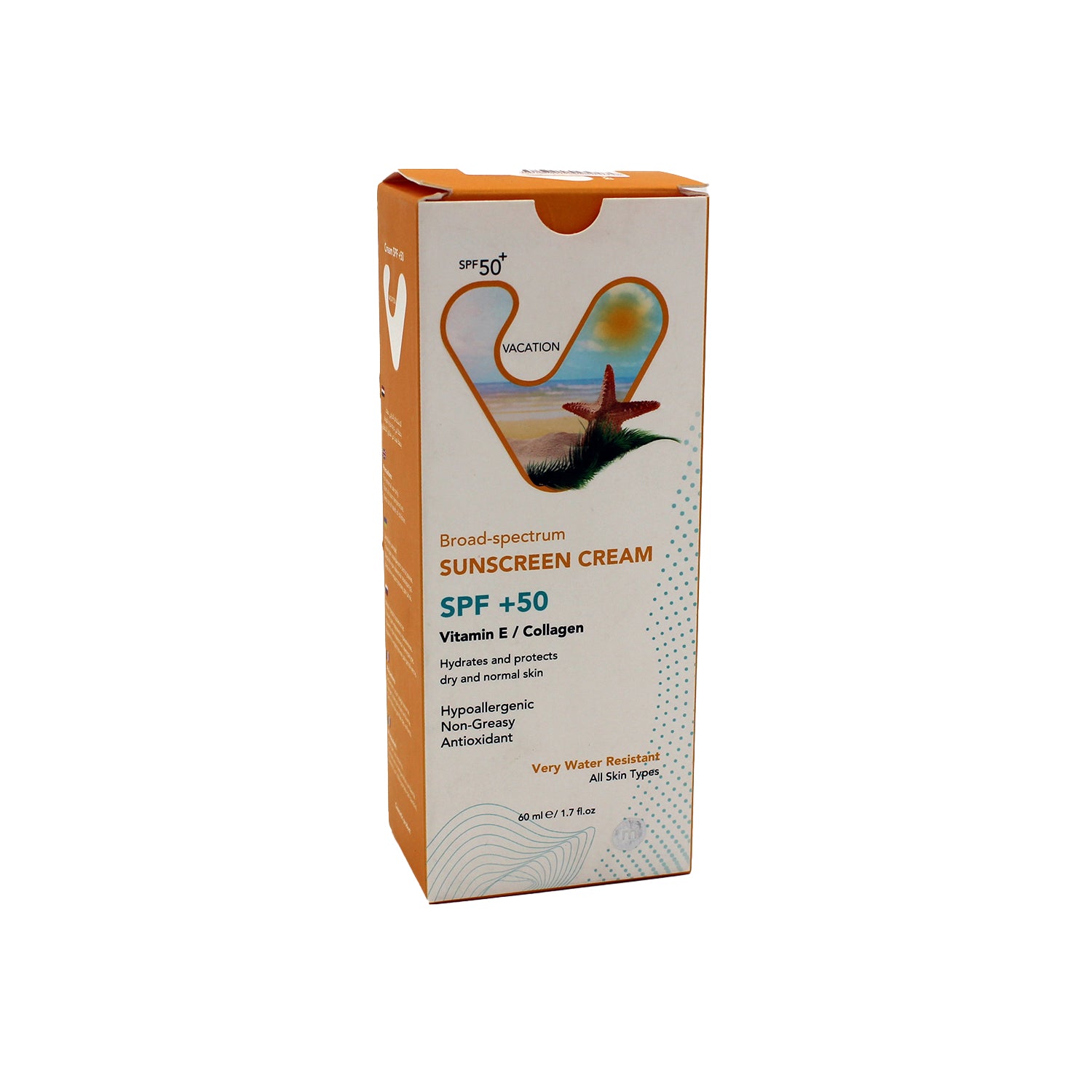 واقي شمس للوجه والجسم مضاد للحساسية، مقاوم للماء، غير دهني، مضاد للأكسدة ومضاد للشيخوخة، غني بفيتامين E والكولاجين، مناسب للبشرة الجافة والعادية، بعامل حماية من الشمس SPF50+