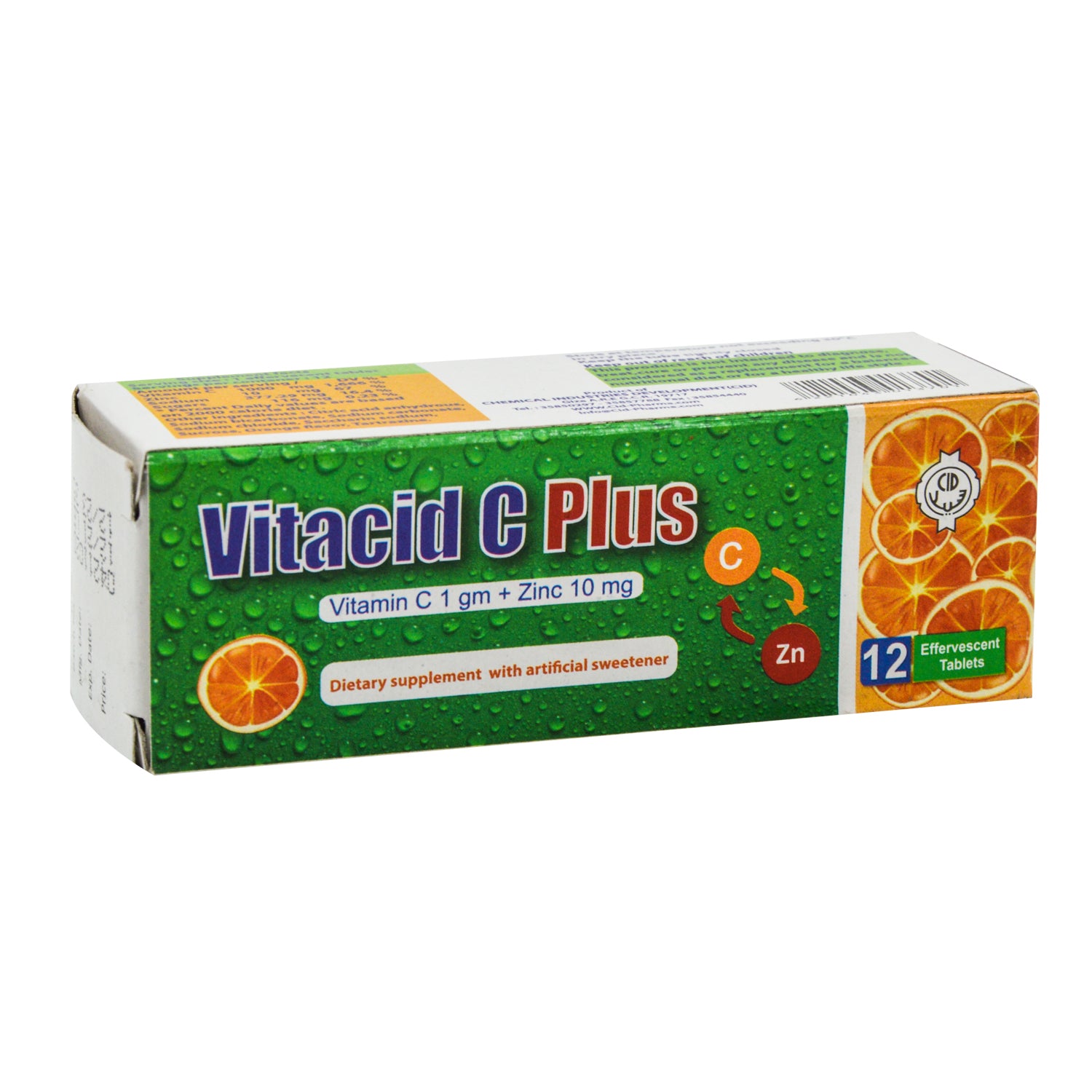 أقراص فيتاسيد بلس الفوارة بنكهة البرتقال مع الزنك، تحتوي على ١٠ ملغ من فيتامين سي