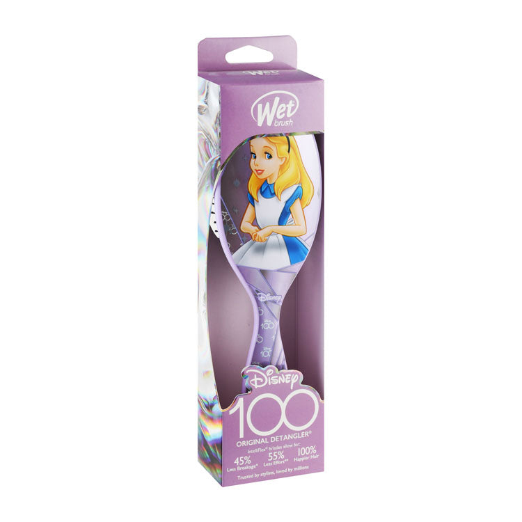 فرشاة فك تشابك الشعر الأصلية من ويت براش Disney 100 أليس في بلاد العجائب باللون الأرجواني هي أداة متخصصة مصممة لفك تشابك الشعر المبلل أو الجاف بدون ألم، وتتميز بتصميم فريد بطابع ديزني.