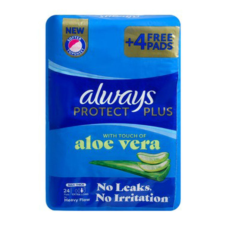 Always Protect Plus Maxi Thick Extra Long Pads Aloe Vera Scent with Wings (20+4 Free)