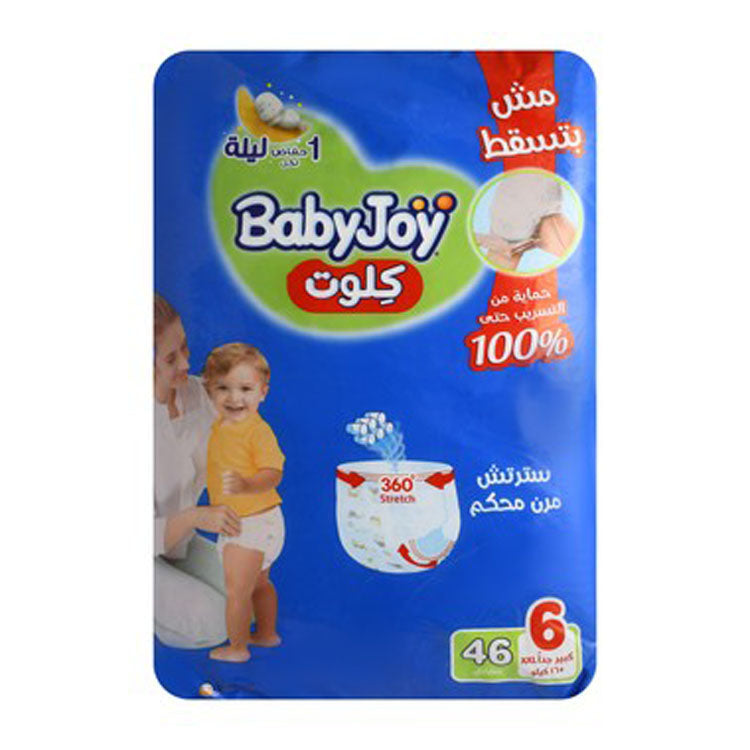 Baby Joy Junior 2XL Diapers Pants Size 6 are designed for babies above 16kg, offering comfort and high absorbency in a convenient pant-style format.