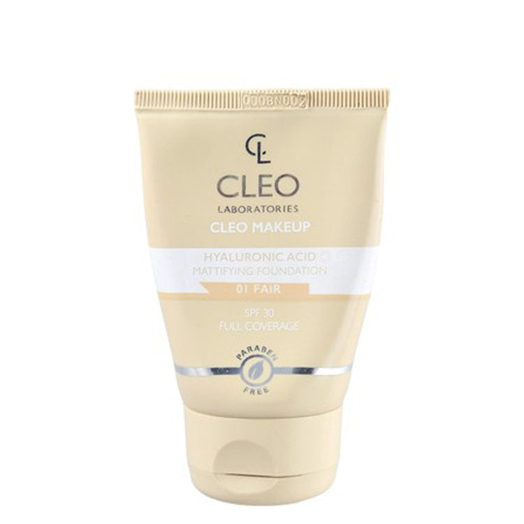 Cleo Mattifying Full Coverage Liquid Foundation with Hyaluronic Acid SPF30 Fair 01 - parabens free, cruelty free