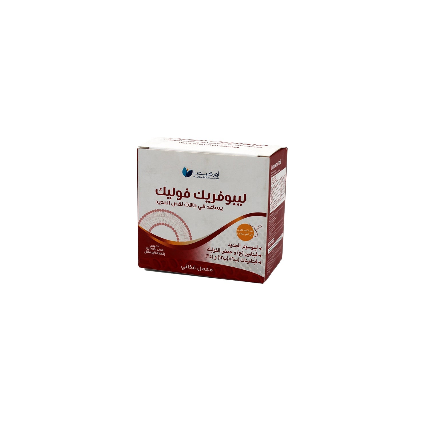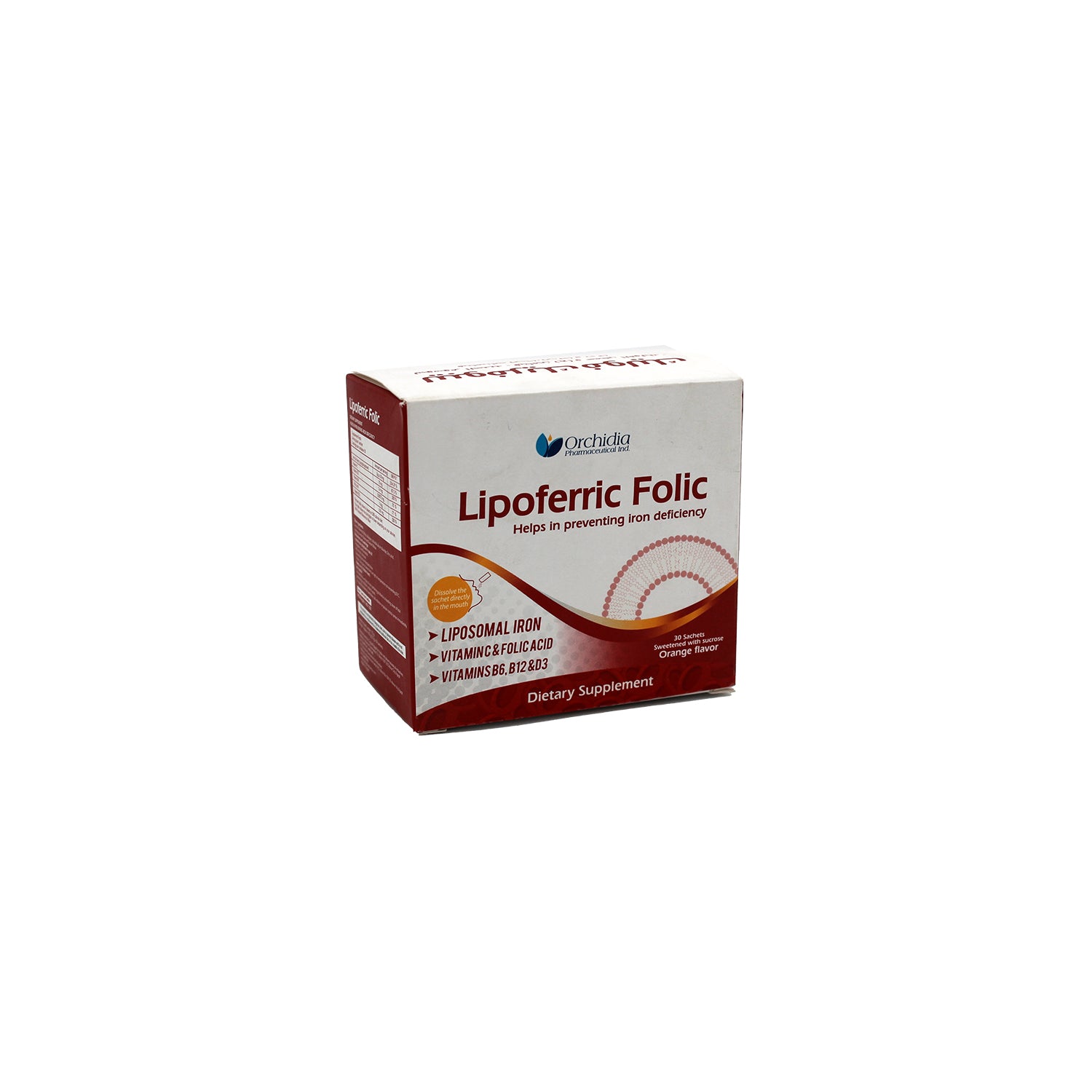 This product is an orange-flavored sachet containing iron, folic acid, and essential vitamins (C, B6, B12) designed to support iron levels and overall nutritional well-being.