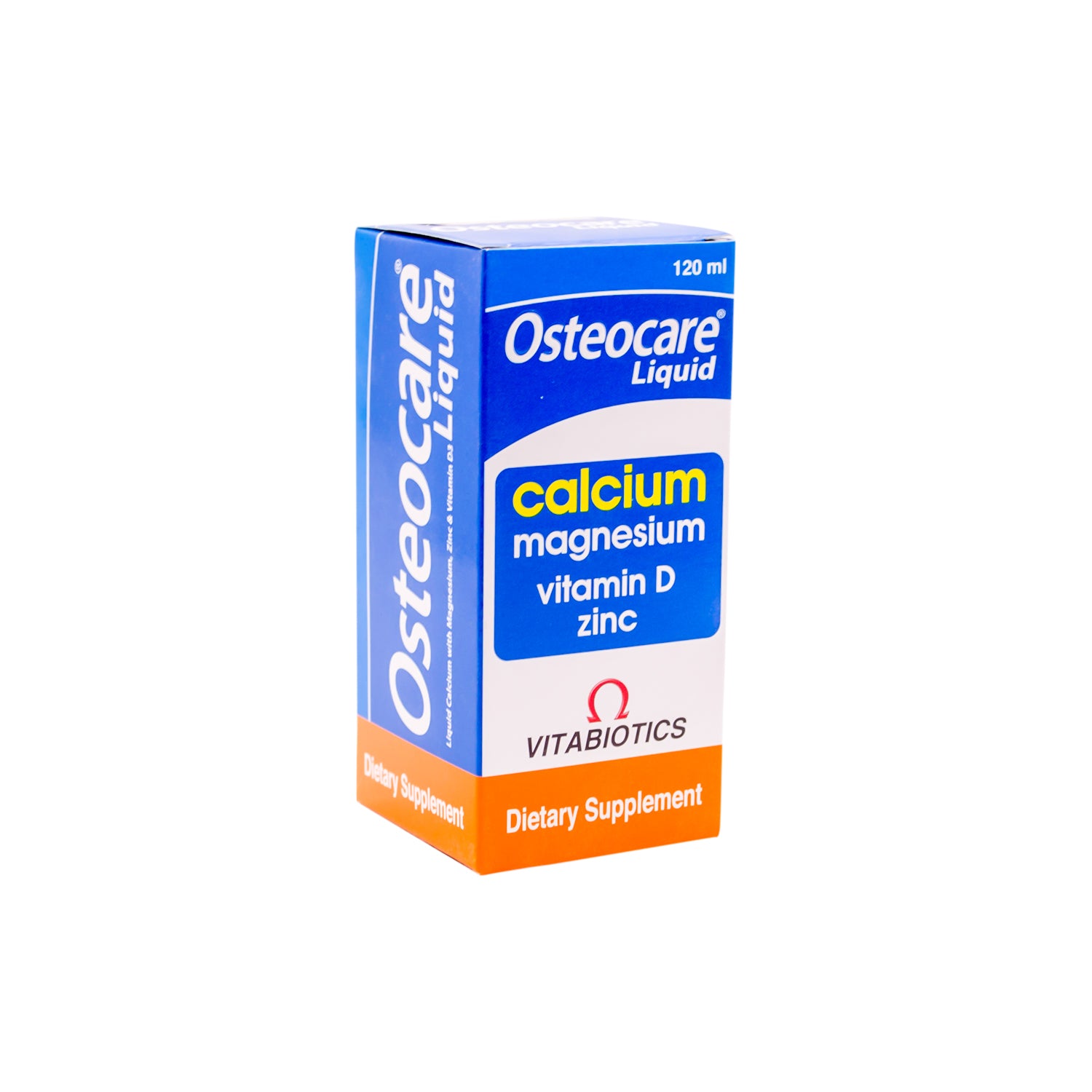 Osteocare Original is a liquid dietary supplement designed to support bone health, featuring 300mg of calcium along with magnesium, vitamin D3, and zinc, in a convenient orange flavor.