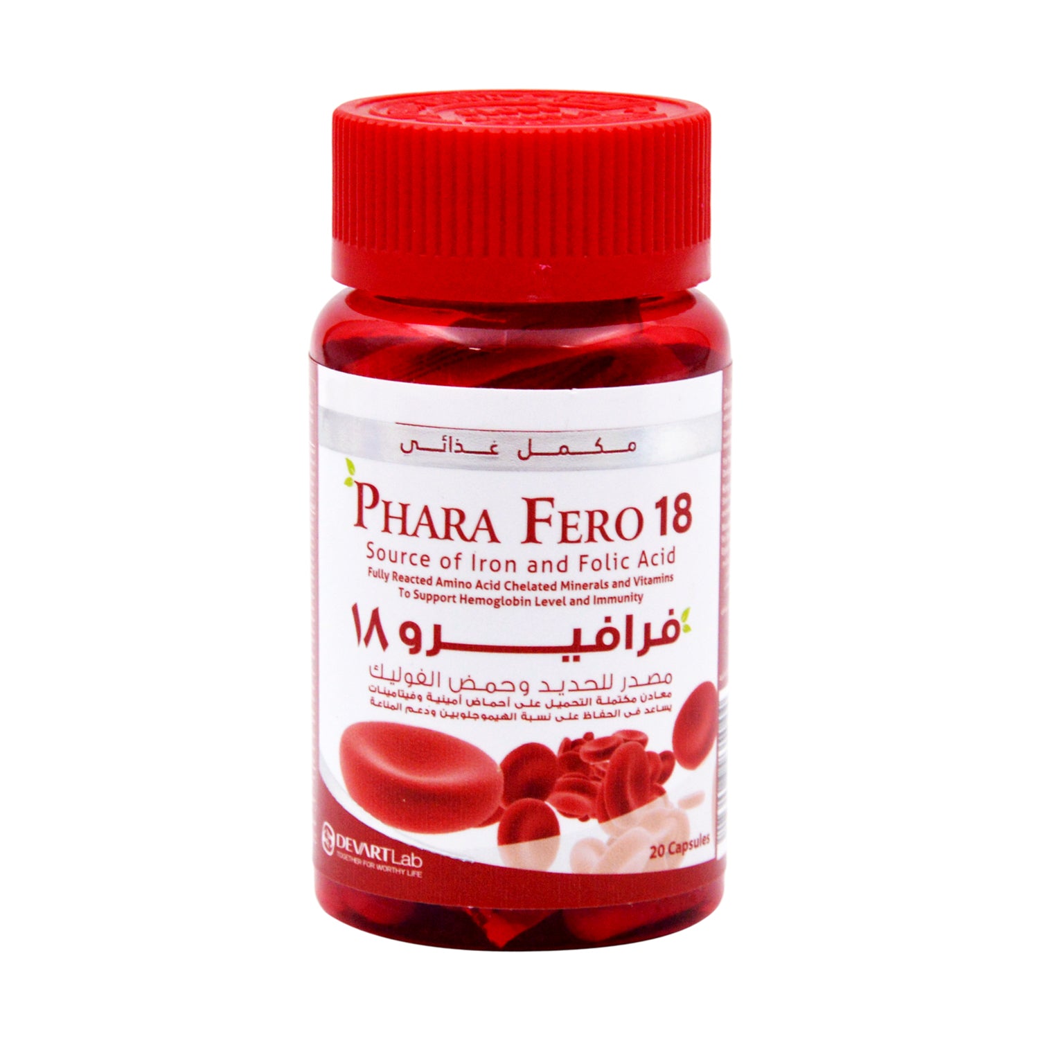 Phara Fero 18mg Iron Hemoglobin & Immune Support Supplement with Folic Acid & Vitamins