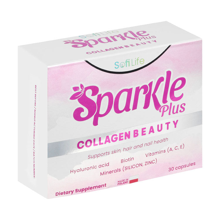This Sofi Life Sparkle Plus supplement combines hydrolysed marine collagen, hyaluronic acid, biotin, and essential vitamins to support overall skin, hair, and nail health from within.