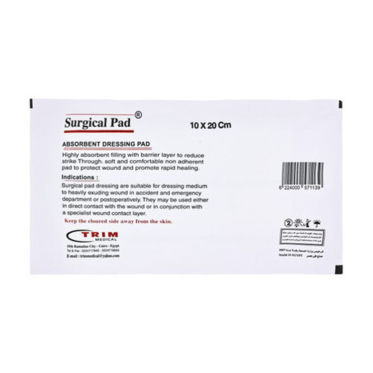 An absorbent surgical dressing pad designed for effective wound management and exudate absorption.