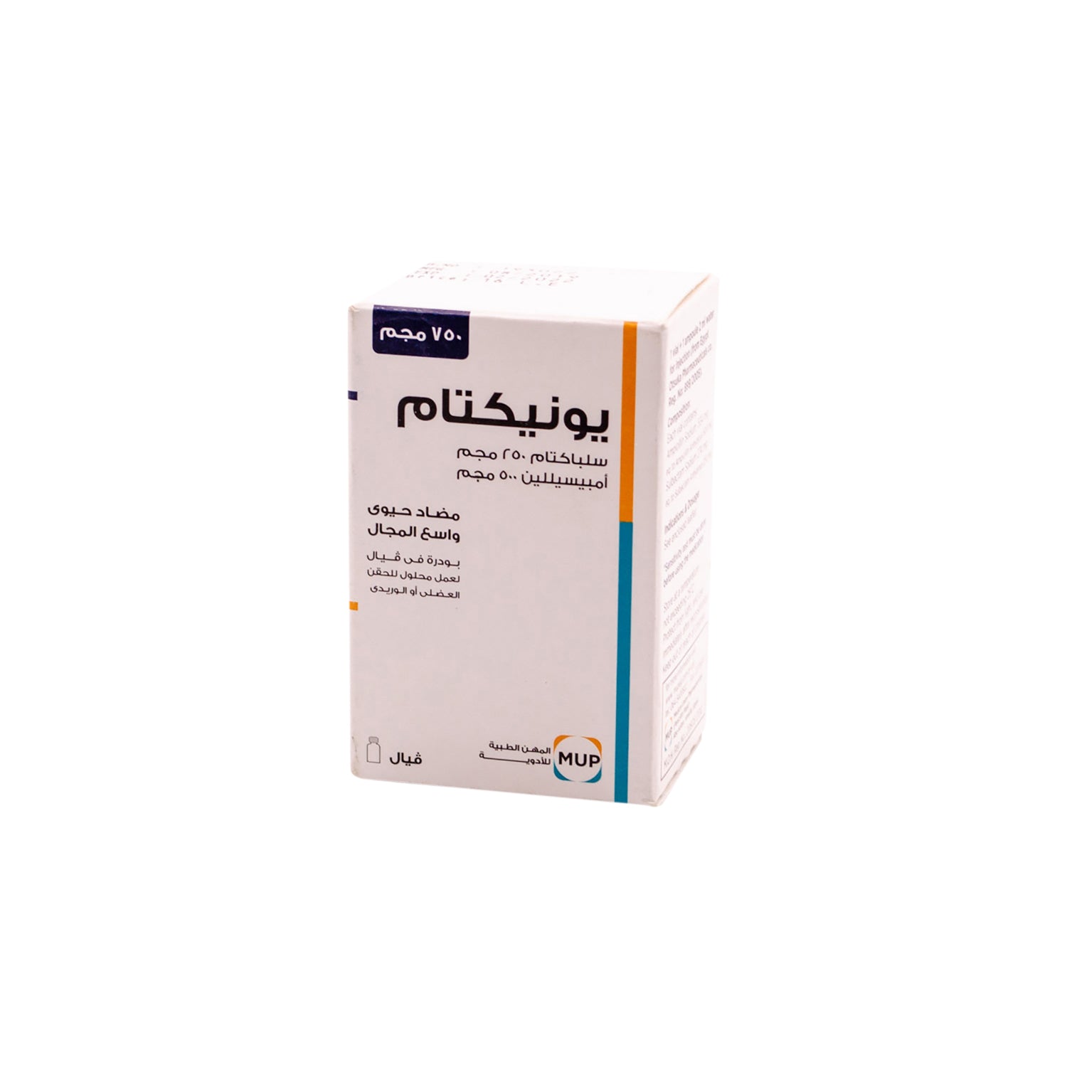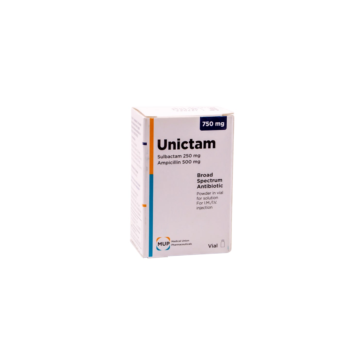 Unictam is a broad-spectrum antibiotic formulation combining sulbactam and ampicillin, provided as a powder vial with a water ampoule for intravenous or intramuscular administration.