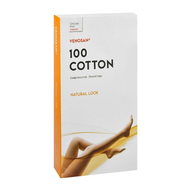 These Venosan 100 Natural Look compression stockings provide therapeutic support for leg health, featuring a comfortable cotton blend and under-knee design.